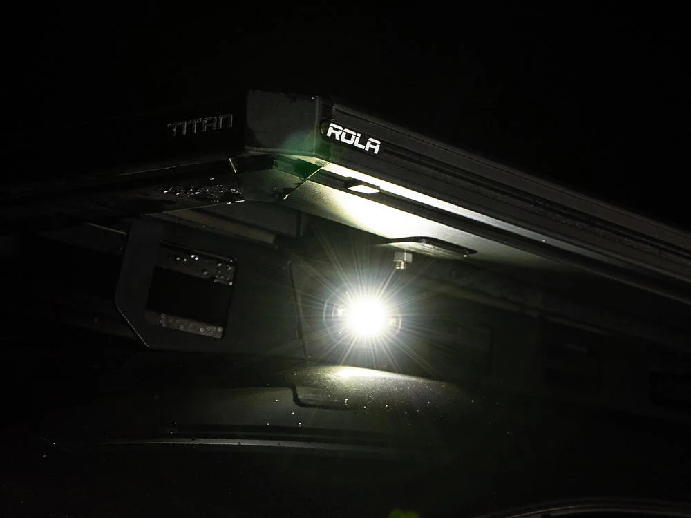 Able to be mounted along the side of the vehicle and illuminate your camp ground the light has 30,000+ hours lifespan, with 558 Lumens, angled at 30 degrees and is IP69K rated.